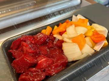 Freshly cut diced pork marinated in a Chinese Glaze matched with peppers and onions